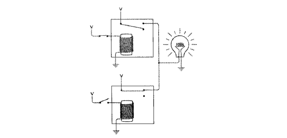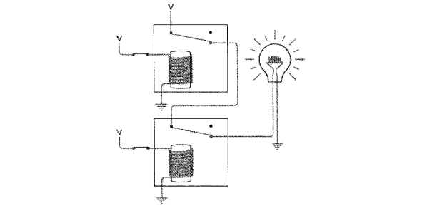 继电器像开关一样,可以串联或并联在电路中执行简单的逻辑任务。这种继电器的组合叫做逻辑门(logic gates)。继电器优于开关之处就在于,继电器可以被其他继电器所控制,而不必由人工控制。这就意味着,这些简单的逻辑门组合起来可以实现更复杂的功能,例如一些简单的算术操作。我们用 0 表示开关断开,用 1 表示开关闭合。以下器件都由继电器构成。