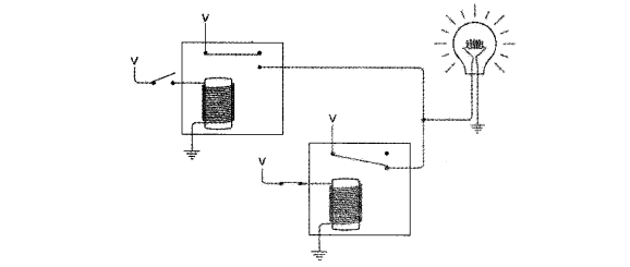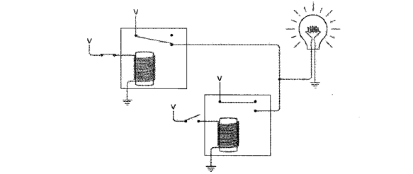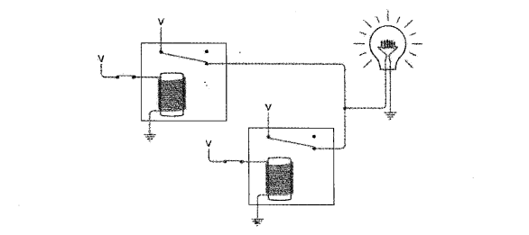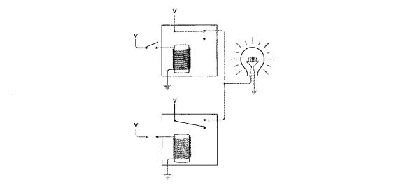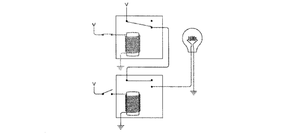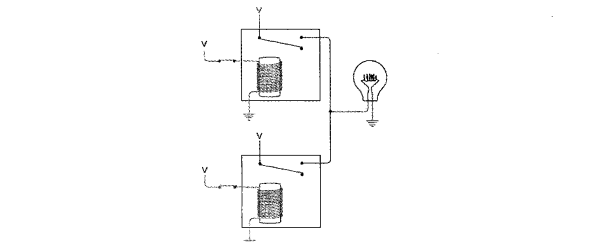 下图电路的两个继电器并联。当两个开关都断开时,灯泡不发光。