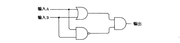 将或门和与非门以与门方式连接在一起,就得到异或门(XOR),如下图。